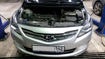 На базе ООО "Восток-Моторс" дилерский центр «Hyundai», было проведено обслуживание автомобиля Hyundai Solaris 2015 года выпуска c бензиновым силовым агрегатом G 1.6 MPI объёмом 1,6 литра.